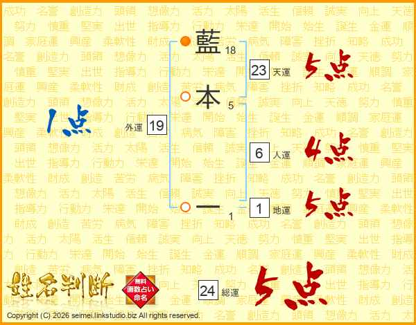 藍本一さんの総運は24画の5点!