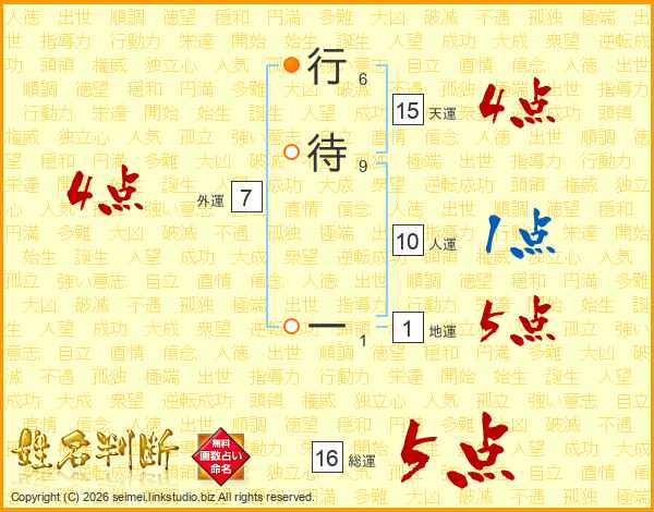 行待一さんの総運は16画の5点!