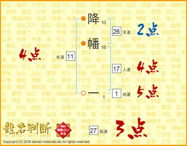 降幡一さんの総運は27画の3点!