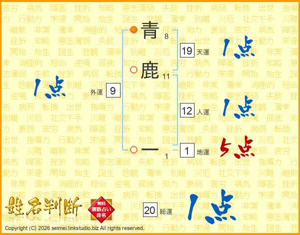 青鹿一さんの総運は20画の1点!