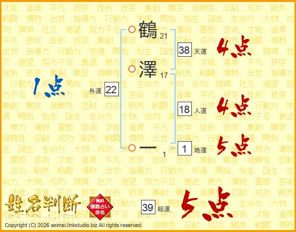 鶴澤一さんの総運は39画の5点!