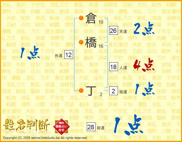 倉橋丁さんの天運は26画の2点!
