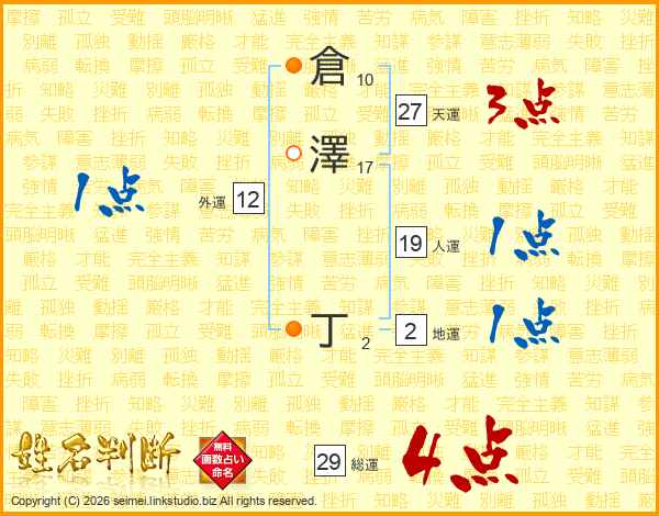 倉澤丁さんの総運は29画の4点!