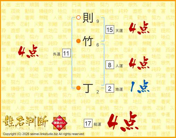 則竹丁さんの総運は17画の4点!