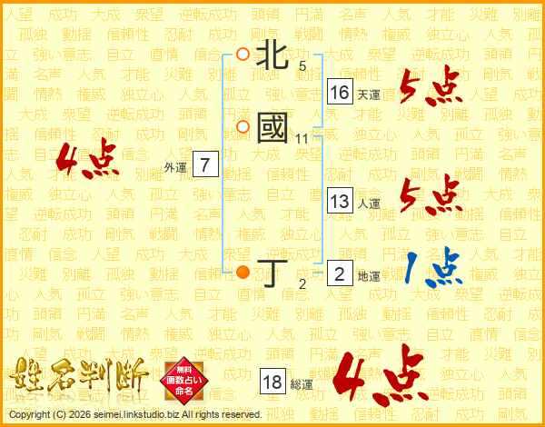 北國丁さんの総運は18画の4点!