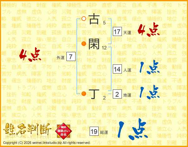 古閑丁さんの総運は19画の1点!