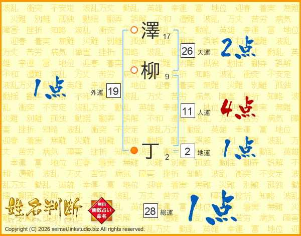 澤柳丁さんの総運は28画の1点!