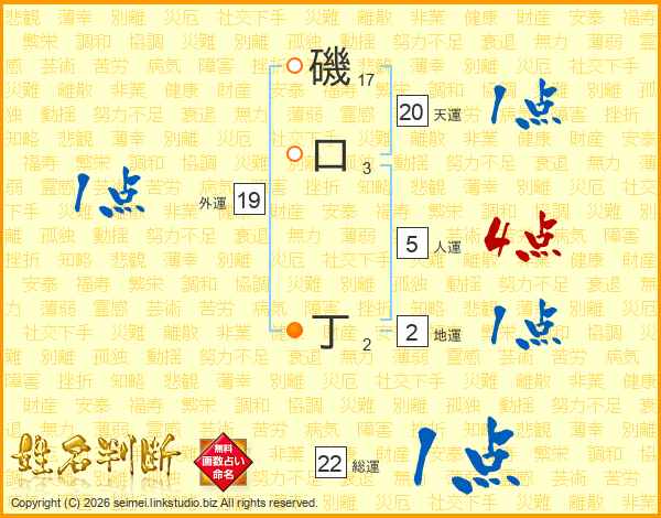 磯口丁さんの総運は22画の1点!