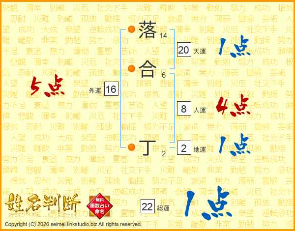 落合丁さんの総運は22画の1点!