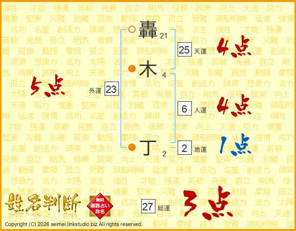轟木丁さんの総運は27画の3点!