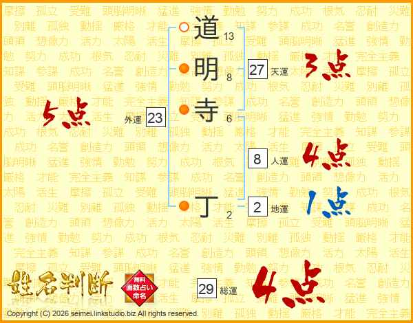 道明寺丁さんの総運は29画の4点!