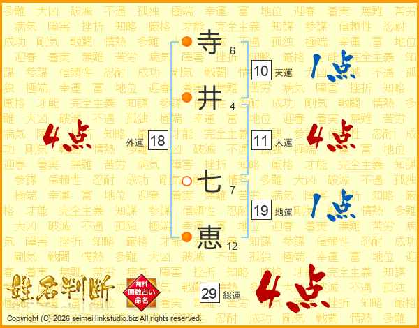 寺(6画)井(4画) 七(7画)恵(12画)