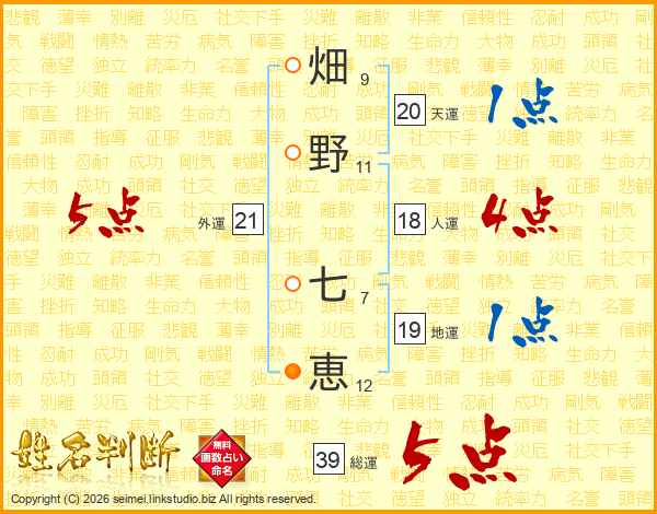 畑野七恵さんの総運は39画の5点!