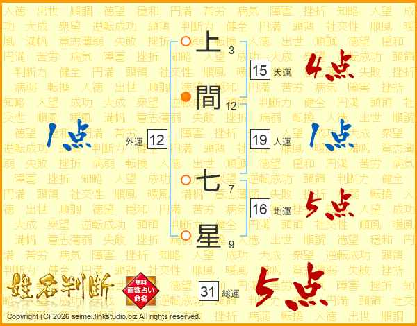 上間七星さんの総運は31画の5点!