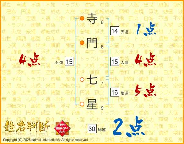 寺門七星さんの総運は30画の2点!