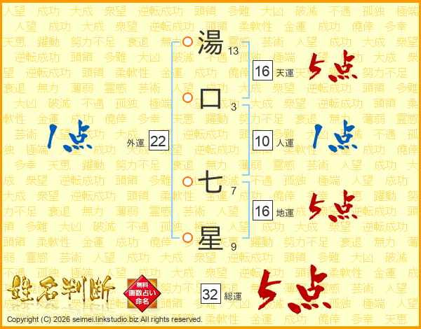 湯口七星さんの総運は32画の5点!