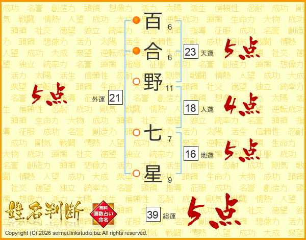 百(6画)合(6画)野(11画) 七(7画)星(9画)