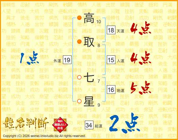 高取七星さんの天運は18画の4点!