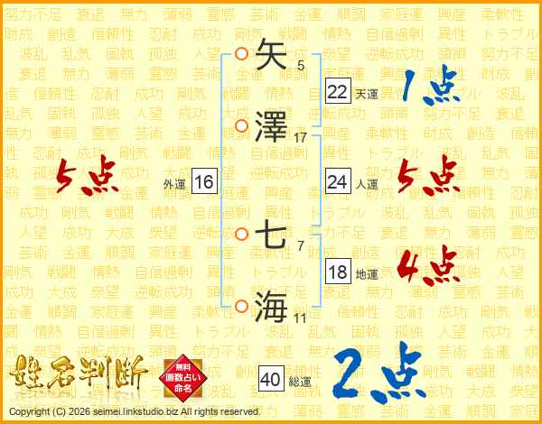 矢澤七海さんの外運は16画の5点!