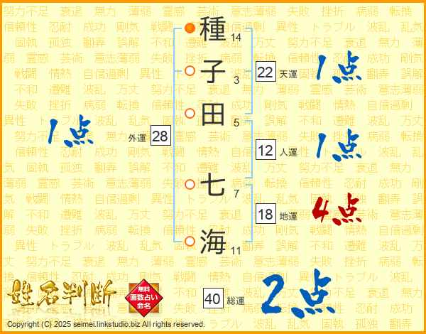 種子田七海さんの天運は22画の1点!
