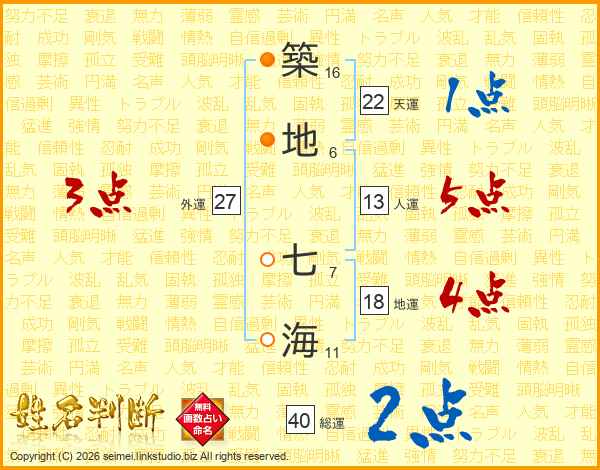築地七海さんの天運は22画の1点!
