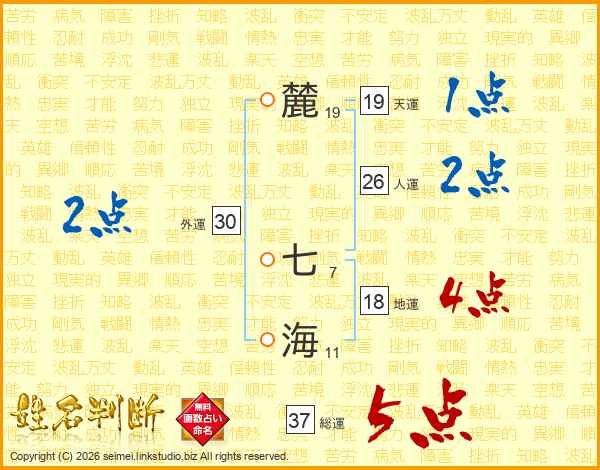麓七海さんの総運は37画の5点!