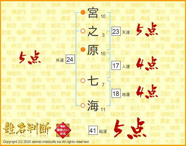 宮之原七海さんの総運は41画の5点!