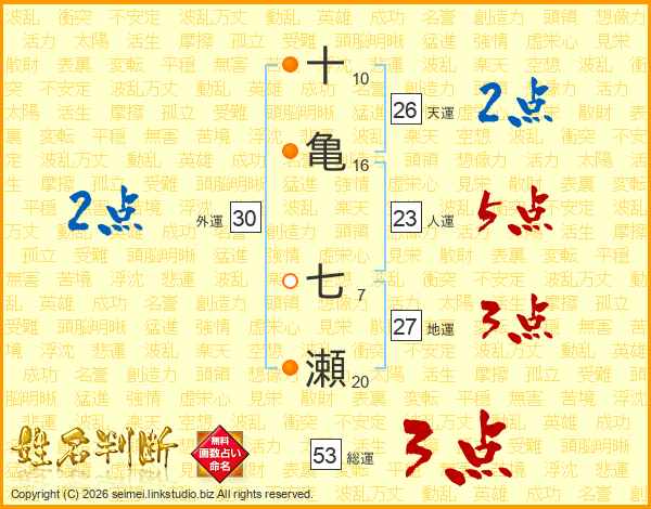 十亀七瀬さんの天運は26画の2点!