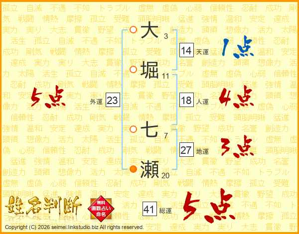大堀七瀬さんの総運は41画の5点!