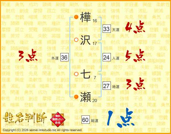 樺沢七瀬さんの総運は60画の1点!