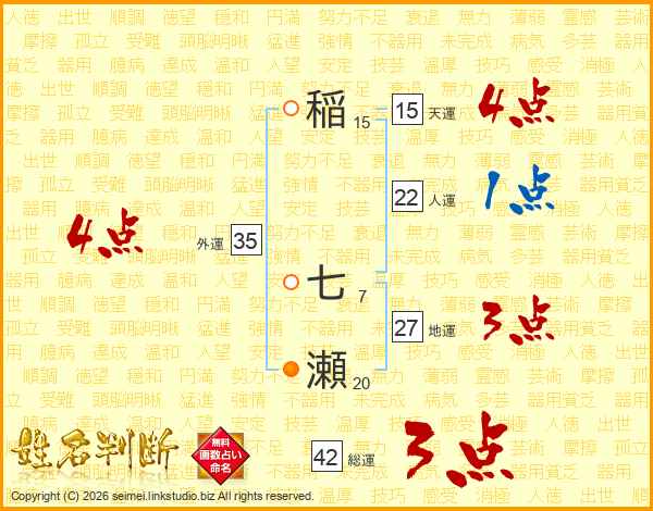 稲七瀬さんの外運は35画の4点!