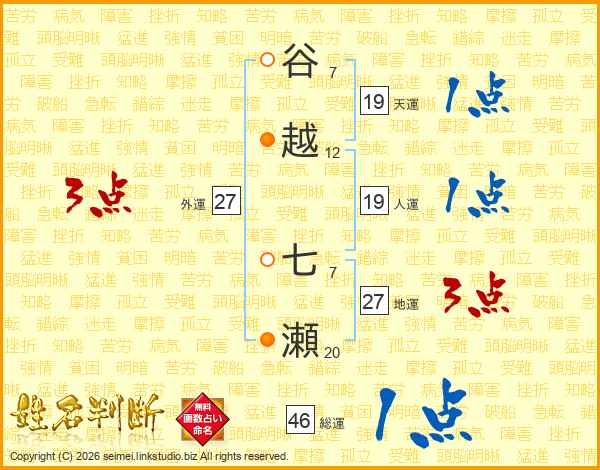 谷越七瀬さんの総運は46画の1点!
