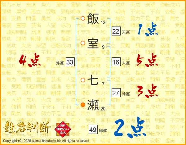 飯室七瀬さんの総運は49画の2点!