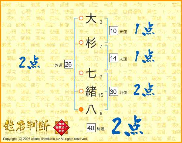 大杉七緒八さんの総運は40画の2点!