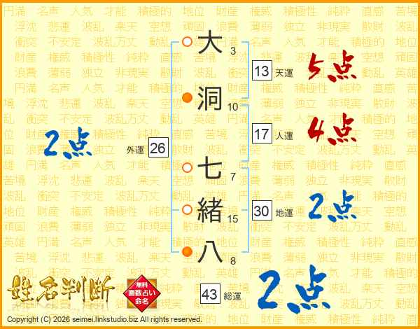 大洞七緒八さんの総運は43画の2点!