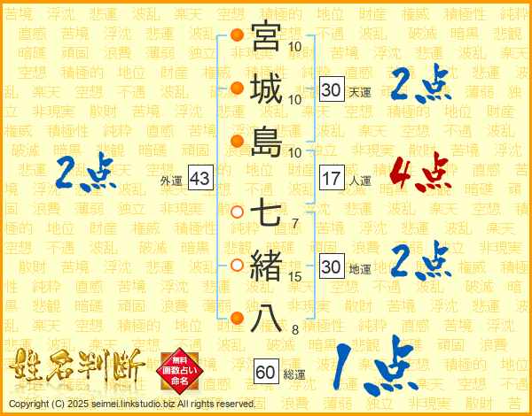 宮城島七緒八さんの地運は30画の2点!