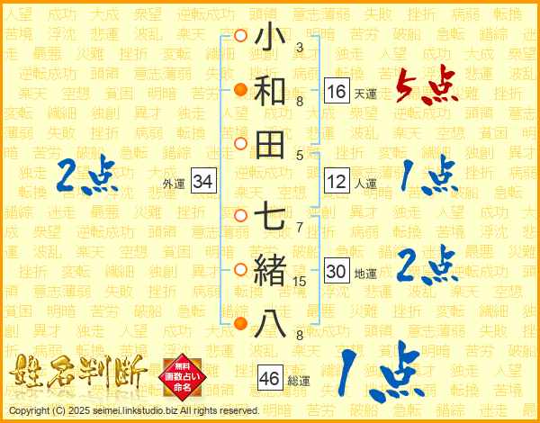 小(3画)和(8画)田(5画) 七(7画)緒(15画)八(8画)
