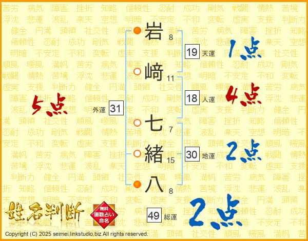 岩(8画)﨑(11画) 七(7画)緒(15画)八(8画)
