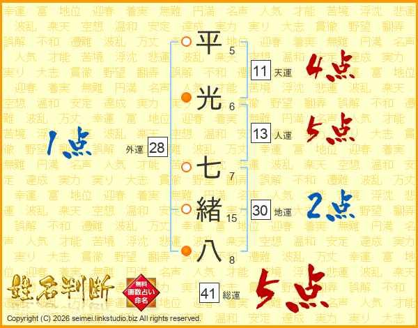 平光七緒八さんの総運は41画の5点!