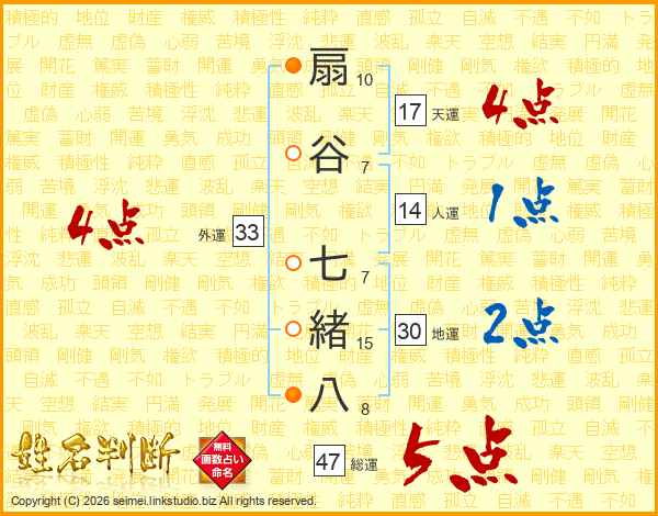 扇谷七緒八さんの総運は47画の5点!