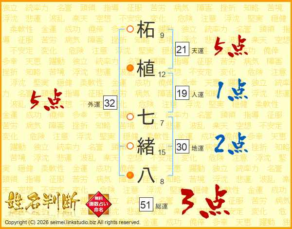 柘植七緒八さんの総運は51画の3点!
