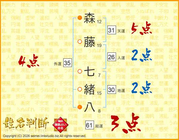 森藤七緒八さんの総運は61画の3点!