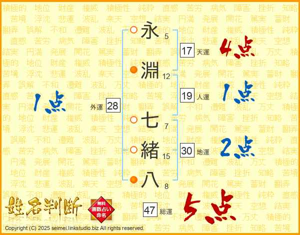 永淵七緒八さんの総運は47画の5点!