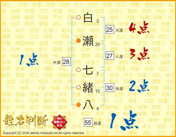白瀬七緒八さんの総運は55画の1点!