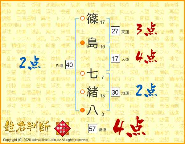 篠島七緒八さんの総運は57画の4点!
