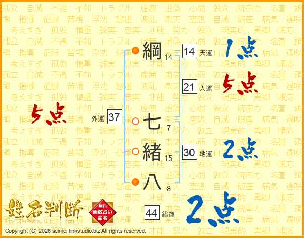 綱七緒八さんの外運は37画の5点!
