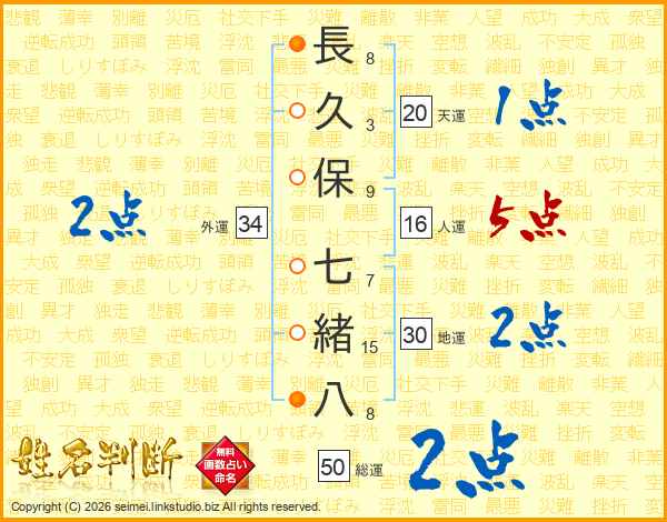 長久保七緒八さんの総運は50画の2点!