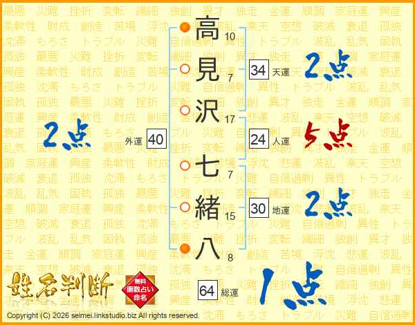 高見沢七緒八さんの総運は64画の1点!