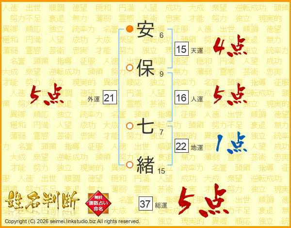 安保七緒さんの外運は21画の5点!