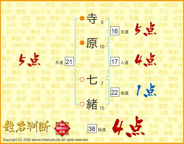 寺原七緒さんの総運は38画の4点!